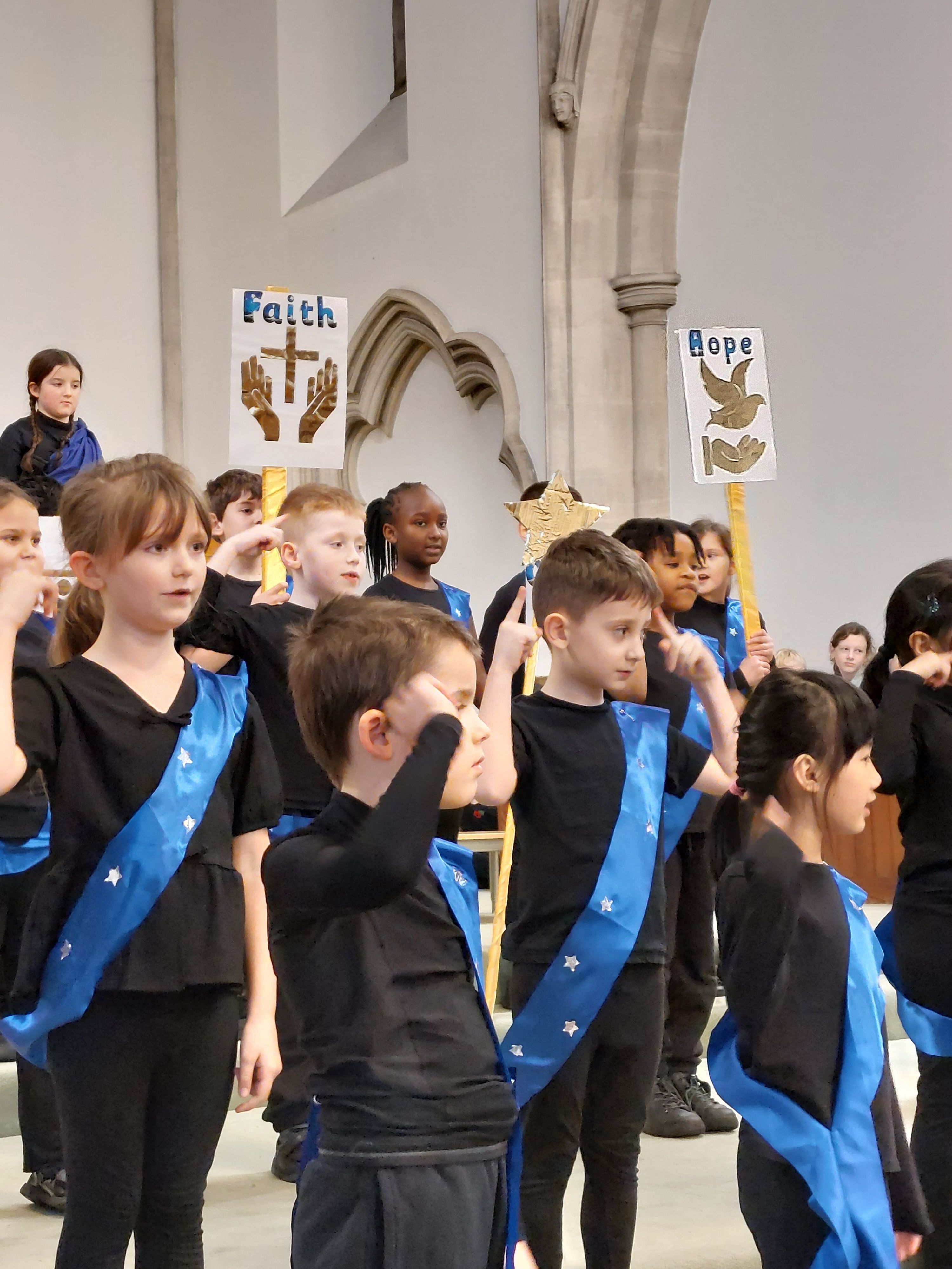 Each week children participate in whole school and key stage liturgies and class-based Celebration of the Word.