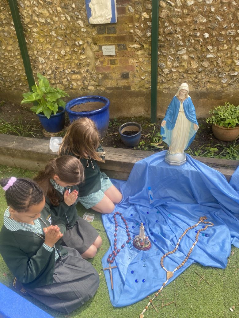 Children are also offered opportunities to join together in prayer, for example lunchtime Rosary Groups in October and May and Stations of the Cross during Lent.
