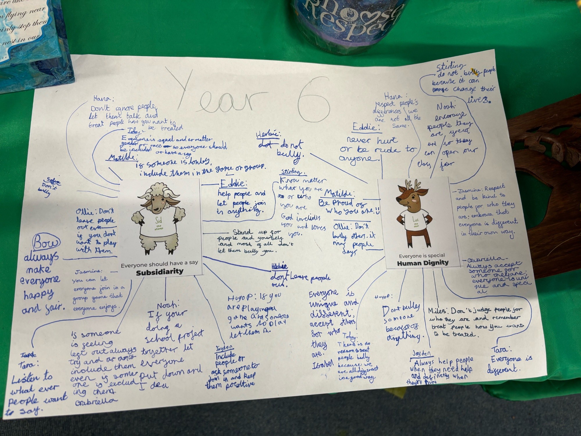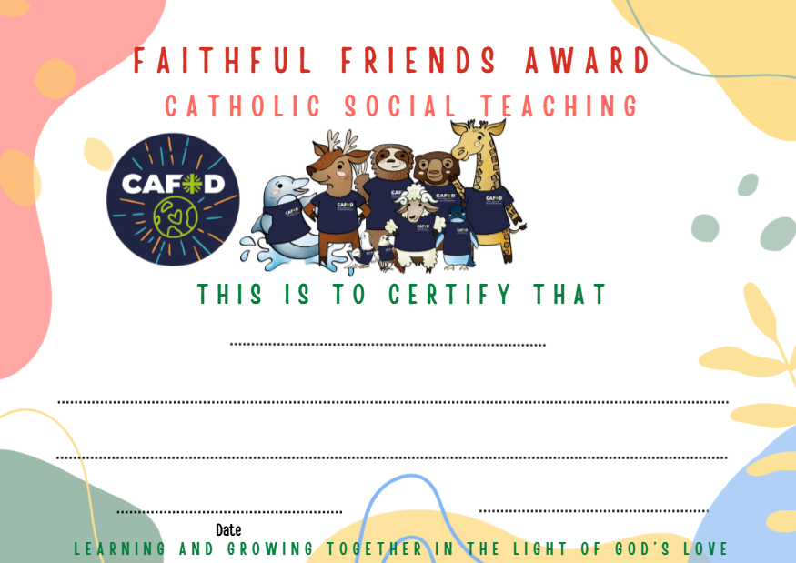 At St Joseph’s, Catholic Social Teaching is incorporated into our curriculum. Children are asked to put their faith into action and reflect on how their learning enables them to do so. Catholic Social Teaching underpins the essence of our daily school life. We continue to use the CAFOD Catholic Social Teaching resources and the animal mascots to support the children’s understanding of principles.